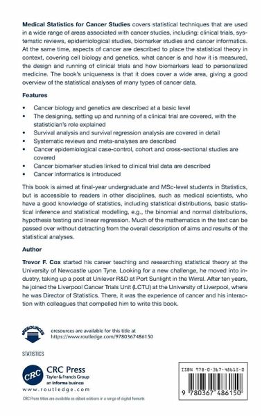 A broad and accessible overview of statistical methods in cancer researchNecessary background in cancer biology and geneticsDetails of statistical methodology with minimal algebraMany examples using real data from cancer clinical trialsAppendix giving statistics revision.
