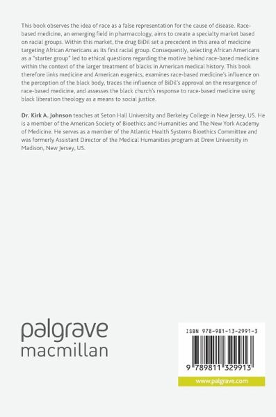 This book observes the idea of race as a false representation for the cause of disease. Race-based medicine, an emerging field in pharmacology, aims to create a specialty market based on racial groups. Within this market, the drug BiDil set a precedent in this area of medicine targeting African Americans as its first racial group. Consequently, selecting African Americans as a "starter group" led to ethical questions regarding the motive behind race-based medicine within the context of the larger treatment of blacks in American medical history. This book therefore links medicine and American eugenics, examines race-based medicine's influence on the perception of the black body, traces the influence of BiDil's approval on the resurgence of race-based medicine, and assesses the black church's response to race-based medicine using black liberation theology as a means to social justice.