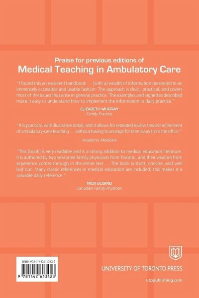 A practical, hands-on resource for physicians in all specialties, Medical Teaching in Ambulatory Care is a guide on training medical students and residents in settings such as private practices and hospital clinics. Concise, engaging, and easy to follow, it is an ideal handbook for the busy practitioner looking to upgrade his or her teaching abilities. The authors cover basic education theory, individual teaching skills, strategies for evaluating trainees, and tips on working with challenging learners. Readers can follow along with the storyline of a fictional Dr. Smith, through whom the book provides practical examples that complement each theory, skill, and strategy presented. This new edition has been updated with key medical education theories that are now core to current approaches, expanded details on one-to-one teaching, and information on structured formats to use when reviewing patient encounters with learners. The authors also examine the impact of digital technology on medical education in office-based settings and provide tips on working with the new generation of learners who enjoy – and expect – instant access to information of all kinds.