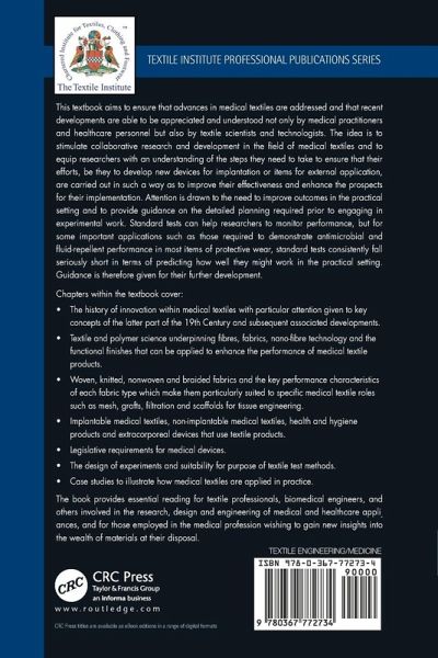 This textbook aims to ensure that advances in medical textiles are addressed and that recent developments are able to be appreciated and understood not only by medical practitioners and healthcare personnel but also by textile scientists and technologists. The idea is to stimulate collaborative research and development in the field of medical textiles and to equip researchers with an understanding of the steps they need to take to ensure that their efforts, be they to develop new devices for implantation or items for external application, are carried out in such a way as to improve their effectiveness and enhance the prospects for their implementation. Attention is drawn to the need to improve outcomes in the practical setting and to guidance on the detailed planning required prior to engaging in experimental work. Standard tests can help researchers to monitor performance, but for some important applications such as those required to demonstrate antimicrobial and fluid-repellent performance in most items of protective wear, standard tests consistently fall seriously short in terms of predicting how well they might work in the practical setting. Guidance is therefore given for their further development. Chapters within the textbook cover: The history of innovation within medical textiles with particular attention given to key concepts of the latter part of the 19th Century and subsequent associated developments. Textile and polymer science underpinning fibres, fabrics, nano-fibre technology and the functional finishes that can be applied to enhance the performance of medical textile products. Woven, knitted, nonwoven and braided fabrics and the key performance characteristics of each fabric type which make them particularly suited to specific medical textile roles such as mesh, grafts, filtration and scaffolds for tissue engineering. Implantable medical textiles, non-implantable medical textiles, health and hygiene products and extracorporeal devices that use textile products. Legislative requirements for medical devices. The design of experiments and suitability for purpose of textile test methods. Case studies to illustrate how medical textiles are applied in practice. The book provides essential reading for textile professionals, biomedical engineers, and others involved in the research, design and engineering of medical and healthcare appliances, and for those employed in the medical profession wishing to gain new insights into the wealth of materials at their disposal.
