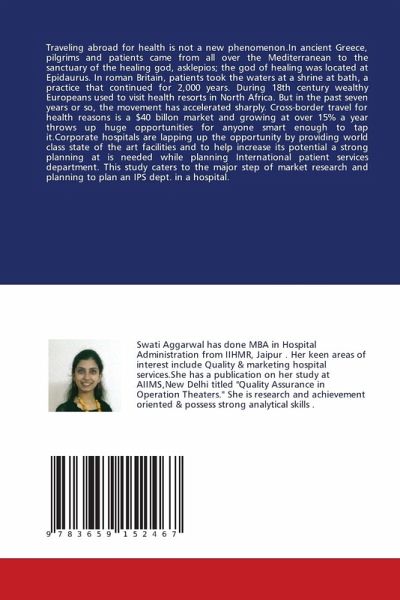 Traveling abroad for health is not a new phenomenon.In ancient Greece, pilgrims and patients came from all over the Mediterranean to the sanctuary of the healing god, asklepios; the god of healing was located at Epidaurus. In roman Britain, patients took the waters at a shrine at bath, a practice that continued for 2,000 years. During 18th century wealthy Europeans used to visit health resorts in North Africa. But in the past seven years or so, the movement has accelerated sharply. Cross-border travel for health reasons is a $40 billon market and growing at over 15% a year throws up huge opportunities for anyone smart enough to tap it.Corporate hospitals are lapping up the opportunity by providing world class state of the art facilities and to help increase its potential a strong planning at is needed while planning International patient services department. This study caters to the major step of market research and planning to plan an IPS dept. in a hospital.