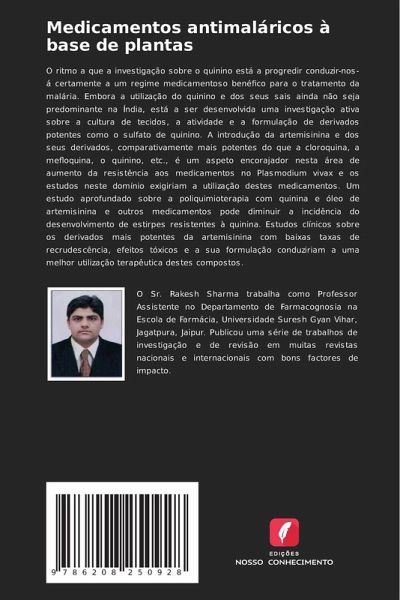 O ritmo a que a investigação sobre o quinino está a progredir conduzir-nos-á certamente a um regime medicamentoso benéfico para o tratamento da malária. Embora a utilização do quinino e dos seus sais ainda não seja predominante na Índia, está a ser desenvolvida uma investigação ativa sobre a cultura de tecidos, a atividade e a formulação de derivados potentes como o sulfato de quinino. A introdução da artemisinina e dos seus derivados, comparativamente mais potentes do que a cloroquina, a mefloquina, o quinino, etc., é um aspeto encorajador nesta área de aumento da resistência aos medicamentos no Plasmodium vivax e os estudos neste domínio exigiriam a utilização destes medicamentos. Um estudo aprofundado sobre a poliquimioterapia com quinina e óleo de artemisinina e outros medicamentos pode diminuir a incidência do desenvolvimento de estirpes resistentes à quinina. Estudos clínicos sobre os derivados mais potentes da artemisinina com baixas taxas de recrudescência, efeitos tóxicos e a sua formulação conduziriam a uma melhor utilização terapêutica destes compostos.