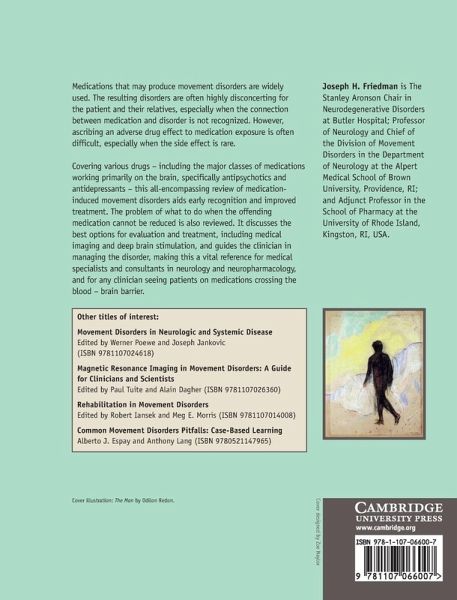 Medications that may produce movement disorders are widely used. The resulting disorders are often highly disconcerting for the patient and their relatives, especially when the connection between medication and disorder is not recognized. However, ascribing an adverse drug effect to medication exposure is often difficult, especially when the side effect is rare. Covering various drugs - including the major classes of medications working primarily on the brain, specifically antipsychotics and antidepressants - this all-encompassing review of medication-induced movement disorders aids early recognition and improved treatment. The problem of what to do when the offending medication cannot be reduced is also reviewed. It discusses the best options for evaluation and treatment, including medical imaging and deep brain stimulation, and guides the clinician in managing the disorder, making this a vital reference for medical specialists and consultants in neurology and neuropharmacology and any clinician seeing patients on medications crossing the blood-brain barrier.