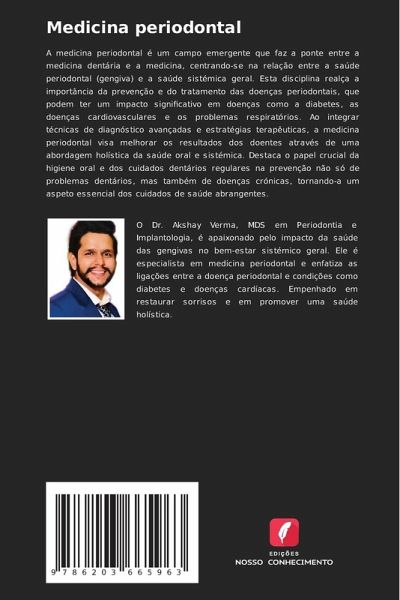 A medicina periodontal é um campo emergente que faz a ponte entre a medicina dentária e a medicina, centrando-se na relação entre a saúde periodontal (gengiva) e a saúde sistémica geral. Esta disciplina realça a importância da prevenção e do tratamento das doenças periodontais, que podem ter um impacto significativo em doenças como a diabetes, as doenças cardiovasculares e os problemas respiratórios. Ao integrar técnicas de diagnóstico avançadas e estratégias terapêuticas, a medicina periodontal visa melhorar os resultados dos doentes através de uma abordagem holística da saúde oral e sistémica. Destaca o papel crucial da higiene oral e dos cuidados dentários regulares na prevenção não só de problemas dentários, mas também de doenças crónicas, tornando-a um aspeto essencial dos cuidados de saúde abrangentes.