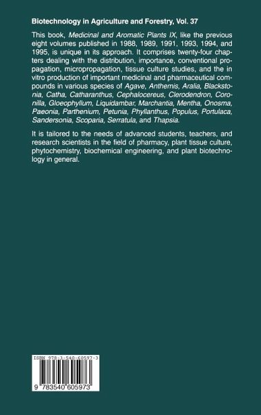 Das Buch befaßt sich mit biotechnologischen Methoden zur Vermehrung verschiedener Arznei- und Aromapflanzen, wie z.B. Agave, Minze, Petunie und Pappel, sowie der Produktion von pharmazeutisch verwertbaren Inhaltsstoffen in der Gewebekultur.