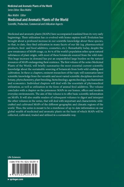 Medicinal and aromatic plants (MAPs) have accompanied mankind from its very early beginnings. Their utilization has co-evolved with homo sapiens itself bringing about a profound increase in our scientific knowledge of these species enabling them to be used in many facets of our life (e.g. pharmaceutical products, feed- and food additives, cosmetics, etc.). Remarkably, despite the new renaissance of MAPs usage, ca. 80 % of the world's population is relying on natural substances of plant origin, with most of these botanicals sourced from the wild state. This first volume and ultimately the series, provides readers with a wealth of information on medicinal and aromatic plants.