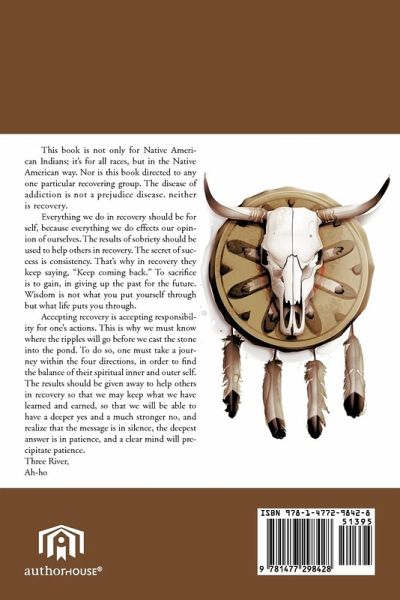 This book is not only for Native American Indians; it's for all races, but in the Native American way. Nor is this book directed to any one particular recovering group. The disease of addiction is not a prejudice disease. neither is recovery. Everything we do in recovery should be for self, because everything we do effects our opinion of ourselves. The results of sobriety should be used to help others in recovery. The secret of success is consistency. That's why in recovery they keep saying, "Keep coming back." To sacrifice is to gain, in giving up the past for the future. Wisdom is not what you put yourself through but what life puts you through. Accepting recovery is accepting responsibility for one's actions. This is why we must know where the ripples will go before we cast the stone into the pond. To do so, one must take a journey within the four directions, in order to find the balance of their spiritual inner and outer self. The results should be given away to help others in recovery so that we may keep what we have learned and earned, so that we will be able to have a deeper yes and a much stronger no, and realize that the message is in silence, the deepest answer is in patience, and a clear mind will precipitate patience. Three River, Ah-ho