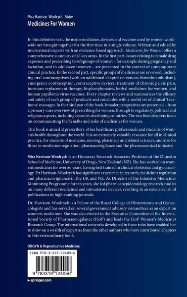 The book is aimed at prescribers, other healthcare professionals and students in the field of women's health throughout the world. It is an extremely valuable resource for all in clinical practice, for students of medicine, nursing, pharmacy and related sciences, and also for those in medicines regulation, pharmacovigilance and the pharmaceutical industry.
