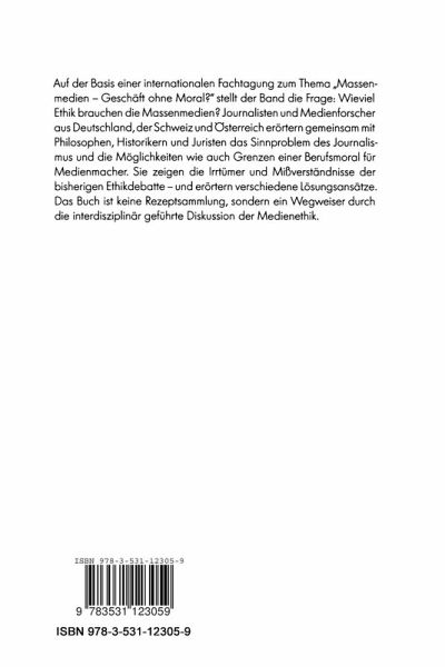 Die Frage nach einer Medienethik.- I. Teil: Die steigende Nachfrage nach Medienmoral - Ursachen und Perspektiven.- Die Diskussion über journalistische Ethik in Deutschland - eine Zwischenbilanz.- Gründe für die Nachfrage nach Medienmoral in der Schweiz.- Zur Debatte über Medienethik in Österreich.- 1. Intervention.- Was haben die Medien mit Ethik zu tun?.- II. Teil: Erträge der Kommunikations- und Medienforschung für die Ethikdebatte.- Zur Geschichte der Pressefreiheit in Deutschland: Als die Ethik zum Maulkorb der Medien wurde.- l Schweizer Medien im Lauf der Geschichte: ein "Bannwald der Demokratie"?.- Erträge der Medienwirkungsforschung für eine Medienethik.- Strukturelle Möglichkeiten und Grenzen von Medien- und Journalismusethik.- Erträge der Rezipientenforschung für eine Medienethik aus der Perspektive einer handlungstheoretisch begründeten (Massen-)Kommunikationsforschung.- 2. Intervention.- Über die Geschäftsbedingungen der Massenmedien: Kritik als Beruf, Information als Aufgabe, Unterhaltung als Geschäft, Moral als Legitimation und Lebenslüge.- III. Teil: Journalistisches Handeln in der Praxis.- Der Journalist im Dienste von Informationsanspruch und Informationspflicht?.- Handelt der Journalist als Teil der Gesellschaft?.- Ist Ethik eine journalistische Handlungsmaxime?.- Spielen Journalisten eine politische Rolle?.- Die Journalisten und der Ethikbedarf.- 3. Intervention.- Die Tugend des Unterlassens. Ethik wirkt auch negativ - oder: Das Prinzip Offenheit läßt es gelegentlich ratsam erscheinen, auf Öffentlichkeit zu verzichten.- IV. Teil: Genügt die normierende Kraft des Medienrechts?.- Recht und Moral im Journalismus. Der Beitrag des Rechts zur Förderung von "gutem" beruflichen Verhalten des Journalisten in derBundesrepublik Deutschland.- Rechtliche Grenzen journalistischen Handelns. Das Rechtssystem als rahmensetzende Norm in der Schweiz.- Rechtsnormen und publizistische Verantwortung. Zur Legalität und Moralität in Österreich.- 4. Intervention.- Sind Journalisten Esoteriker?.- V. Teil: Perspektiven des Medienwandels.- Vom Können des Sollens. Wie die Ethik unter den Zwängen der Ökonomie zur Narrenfreiheit verkommt.- Fernsehen: Veränderung der Nutzungsstrategien. Die Nachfrage nach Programm-Qualität wird zunehmen.- Neue Medien - Neue Technik - Neue Moral?.- Medienwandel - Wahrnehmungswandel. Wege zur veränderten (Bild-)Sprache des Fernsehens.- Autorenverzeichnis.