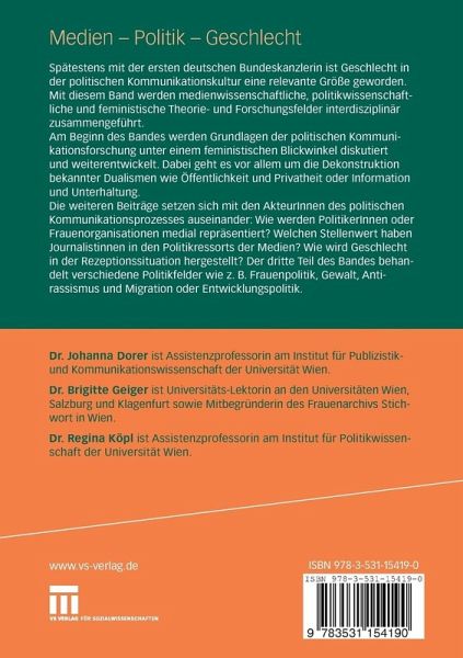 Spätestens mit der ersten deutschen Bundeskanzlerin ist Geschlecht in der politischen Kommunikationskultur eine relevante Größe geworden. Mit diesem Band werden erstmals medienwissenschaftliche, politikwissenschaftliche und feministische Theorie- und Forschungsfelder interdisziplinär zusammengeführt. Am Beginn des Bandes werden Grundlagen der politischen Kommunikationsforschung unter einem feministischen Blickwinkel diskutiert und weiterentwickelt. Dabei geht es vor allem um die Dekonstruktion bekannter Dualismen wie Öffentlichkeit und Privatheit oder Information und Unterhaltung. Die weiteren Beiträge setzen sich mit den AkteurInnen des politischen Kommunikationsprozesses auseinander: Wie werden PolitikerInnen oder Frauenorganisationen medial repräsentiert? Welchen Stellenwert haben Journalistinnen in den Politikressorts der Medien? Wie wird Geschlecht in der Rezeptionssituation hergestellt? Der dritte Teil des Bandes behandelt verschiedene Politikfelder wie z. B. Frauenpolitik,Gewalt, Antirassismus und Migration oder Entwicklungspolitik.
