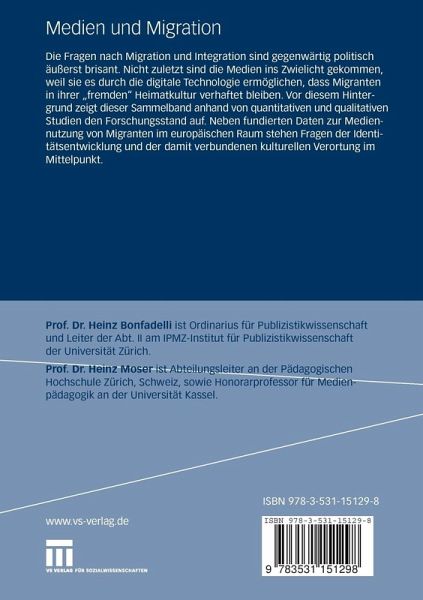 Die Fragen nach Migration und Integration sind gegenwärtig politisch äußerst brisant. Nicht zuletzt sind die Medien ins Zwielicht gekommen, weil sie es durch die digitale Technologie ermöglichen, dass Migranten in ihrer "fremden" Heimatkultur verhaftet bleiben. Vor diesem Hintergrund zeigt dieser Sammelband anhand von quantitativen und qualitativen Studien den Forschungsstand auf. Neben fundierten Daten zur Mediennutzung von Migranten im europäischenRaum stehen Fragen der Identitätsentwicklung und der damit verbundenen kulturellen Verortung im Mittelpunkt.