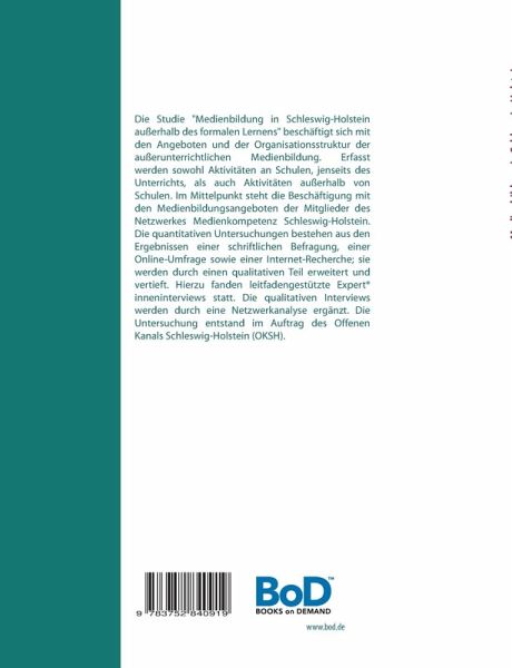 Die Studie "Medienbildung in Schleswig-Holstein außerhalb des formalen Lernens" beschäftigt sich mit den Angeboten und der Organisationsstruktur der außerunterrichtlichen Medienbildung. Erfasst werden sowohl Aktivitäten an Schulen, jenseits des Unterrichts, als auch Aktivitäten außerhalb von Schulen. Im Mittelpunkt steht die Beschäftigung mit den Medienbildungsangeboten der Mitglieder des Netzwerkes Medienkompetenz Schleswig-Holstein. Die quantitativen Untersuchungen bestehen aus einer schriftlichen Befragung, einer Online-Umfrage sowie einer Internet-Recherche; sie werden durch einen qualitativen Teil erweitert und vertieft. Hierzu fanden leitfadengestützte Expert_inneninterviews statt. Eine Netzwerkanalyse ergänzt die qualitativen Interviews. Abschließend werden Empfehlungen zur Organisationsstrukturentwicklung und Qualitätssicherung gegeben. Die Untersuchung entstand im Auftrag des Offenen Kanals Schleswig-Holstein (OKSH).