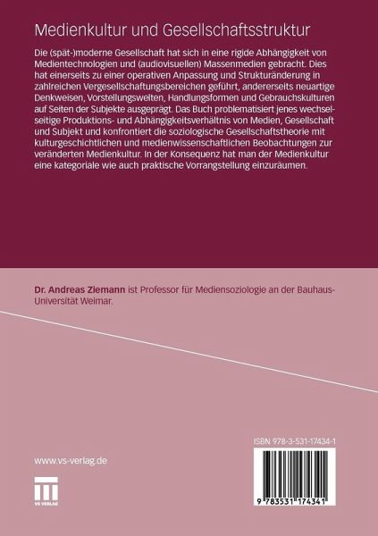 Die (spät-)moderne Gesellschaft hat sich in eine rigide Abhängigkeit von Medientechnologien und (audiovisuellen) Massenmedien gebracht. Dies hat einerseits zu einer operativen Anpassung und Strukturänderung in zahlreichen Vergesellschaftungsbereichen geführt, andererseits neuartige Denkweisen, Vorstellungswelten, Handlungsformen und Gebrauchskulturen auf Seiten der Subjekte ausgeprägt. Das Buch problematisiert jenes wechselseitige Produktions- und Abhängigkeitsverhältnis von Medien, Gesellschaft und Subjekt und konfrontiert die soziologische Gesellschaftstheorie mit kulturgeschichtlichen und medienwissenschaftlichen Beobachtungen zur veränderten Medienkultur.
