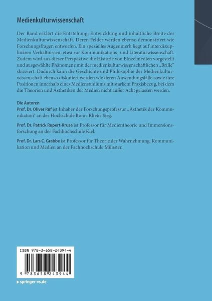 Der Band erklärt die Entstehung, Entwicklung und inhaltliche Breite der Medienkulturwissenschaft. Deren Felder werden ebenso demonstriert wie Forschungsfragen entworfen. Ein spezielles Augenmerk liegt auf interdisziplinären Verhältnissen, etwa zur Kommunikations- und Literaturwissenschaft. Zudem wird aus dieser Perspektive die Historie von Einzelmedien vorgestellt und ausgewählte Phänomene mit der medienkulturwissenschaftlichen "Brille" skizziert. Dadurch kann die Geschichte und Philosophie der Medienkulturwissenschaft ebenso diskutiert werden wie deren Anwendungsfälle sowie ihre Positionen innerhalb eines Medienstudiums mit starkem Praxisbezug, bei dem die Theorien und Ästhetiken der Medien nicht außer Acht gelassen werden.