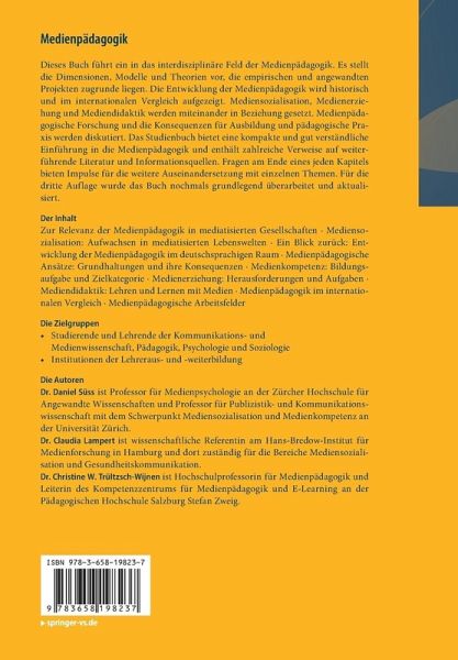 Dieses Buch führt ein in das interdisziplinäre Feld der Medienpädagogik. Es stellt die Dimensionen, Modelle und Theorien vor, die empirischen und angewandten Projekten zugrunde liegen. Die Entwicklung der Medienpädagogik wird historisch und im internationalen Vergleich aufgezeigt. Mediensozialisation, Medienerziehung und Mediendidaktik werden miteinander in Beziehung gesetzt. Medienpädagogische Forschung und die Konsequenzen für Ausbildung und pädagogische Praxis werden diskutiert. Das Studienbuch bietet eine kompakte und gut verständliche Einführung in die Medienpädagogik und enthält zahlreiche Verweise auf weiterführende Literatur und Informationsquellen. Fragen am Ende eines jeden Kapitels bieten Impulse für die weitere Auseinandersetzung mit einzelnen Themen. Für die dritte Auflage wurde das Buch nochmals grundlegend überarbeitet und aktualisiert.