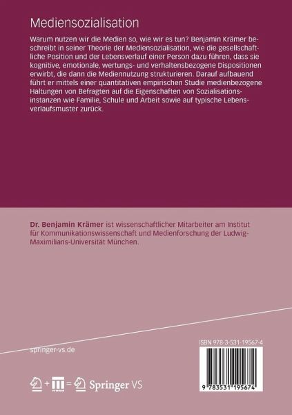 Warum nutzen wir die Medien so, wie wir es tun? Die hier vorgeschlagene Theorie der Mediensozialisation beschreibt, wie die gesellschaftliche Position und der Lebensverlauf einer Person dazu führen, dass sie kognitive, emotionale, wertungs- und verhaltensbezogene Dispositionen erwirbt, die dann die Mediennutzung strukturieren. Eine quantitative empirische Studie führt dann medienbezogene Haltungen von Befragten auf die Eigenschaften von Sozialisationsinstanzen wie Familie, Schule und Arbeit sowie auf typische Lebensverlaufsmuster zurück.