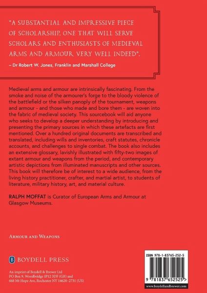 Authoritative reference guide, using the documents in which arms and armour first appeared to explain and define them. "A substantial and impressive piece of scholarship, one that will serve scholars and enthusiasts of medieval arms and armour very well indeed". Dr Robert W. Jones, Franklin and Marshall College Medieval arms and armour are intrinsically fascinating. From the smoke and noise of the armourer's forge to the bloody violence of the battlefield or the silken panoply of the tournament, weapons and armour - and those who made and bore them - are woven into the fabric of medieval society. This sourcebook will aid anyone who seeks to develop a deeper understanding by introducing and presenting the primary sources in which these artefacts are first mentioned. Over a hundred original documents are transcribed and translated, including wills and inventories, craft statutes, chronicle accounts and challenges to single combat. The book also includes an extensive glossary, lavishly illustrated with fifty-two images of extant armour and weapons from the period and contemporary artistic depictions from illuminated manuscripts and other sources. This book will therefore be of interest to a wide audience, from the living history practitioner, crafter and martial artist, to students of literature, military history, art and material culture.