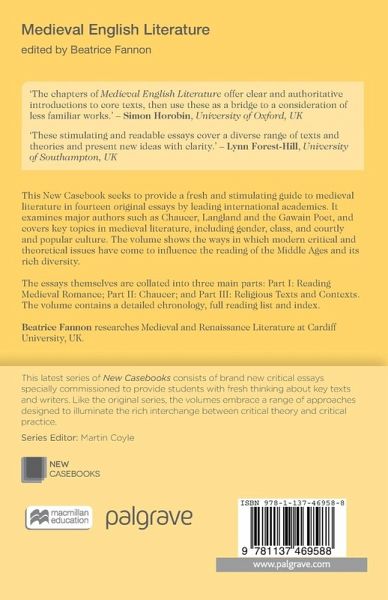 This volume brings together a wide range of original, scholarly essays on key figures and topics in medieval literature by leading academics. The volume examines the major authors such as Chaucer, Langland and the Gawain Poet, and covers key topics in medieval literature, including gender, class, courtly and popular culture, and religion. The volume seeks to provide a fresh and stimulating guide to medieval literature.