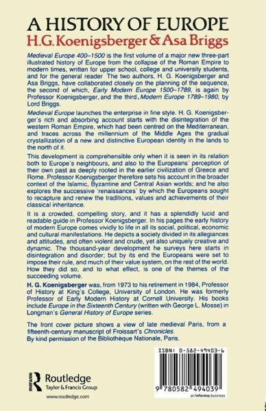 H G Koenigsberger's absorbing account begins with the disintegration of the western Roman Empire and traces across the millennium of the Middle Ages the gradual crystallisation of a new and distinctive European identity. He covers the Islamic, Byzantine and Central Asian worlds in his account which explains Europe's progression from chaos and collapse to a point where it was set to rule much of the world.
