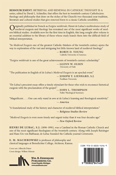 Originally published in French as Exégèse médiévale, Henri de Lubac's multivolume study of medieval exegesis and theology has remained one of the most significant works of modern biblical studies. Available now for the first time in English, this long-sought-after second volume of Medieval Exegesis, translated by E. M. Macierowski, advances the effort to make de Lubac's major study accessible to the widest possible audience.