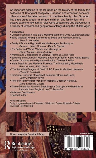 Part 1 Marriage Chapter 1 Dynastic Sanctity in Two Early Medieval Women?EUR?s Lives, Carolyn Edwards Chapter 2 Early Medieval Kinship Structures as Social and Political Controls, Aline G. Hornaday Chapter 3 Family Life in the High and Late Middle Ages, Albrecht Classen Chapter 4 For Better and Worse, Kimberly Keller Part 2 Children Chapter 5 Women and Childbearing in Medieval Florence, Louis Haas Chapter 6 Suffering and Survival in Medieval English Childbirth, Fiona Harris Stoertz Chapter 7 The Care of Orphans in the Byzantine Empire, Timothy S. Miller Chapter 8 Infant Death in Late Medieval Florence, Philip Gavitt Part 3 Family Ties Chapter 9 ?EUR?The Appalling Dangers of Family Life?EUR?, Elizabeth Archibald Chapter 10 The Emotional Universe of Medieval Icelandic Fathers and Sons, Cathy Jorgensen Itnyre Chapter 11 Notes on Family Relationships in Medieval Castilian Narrative, María Luzdivina Cuesta Chapter 12 Three-Generation Families, Joel T. Rosenthal