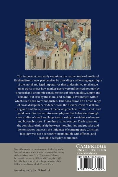 This important study examines the market trade of medieval England by providing a wide-ranging critique of the moral and legal imperatives that underpinned retail trade. James Davis shows how market-goers were influenced not only by practical and economic considerations of price, quality, supply and demand, but also by the moral and cultural environment within which such deals were conducted. This book draws on a broad range of cross-disciplinary evidence, from the literary works of William Langland and the sermons of medieval preachers, to state, civic and guild laws, Davis scrutinises everyday market behaviour through case studies of small and large towns, using the evidence of manor and borough courts. From these varied sources, Davis teases out the complex relationship between morality, law and practice and demonstrates that even the influence of contemporary Christian ideology was not necessarily incompatible with efficient and profitable everyday commerce.