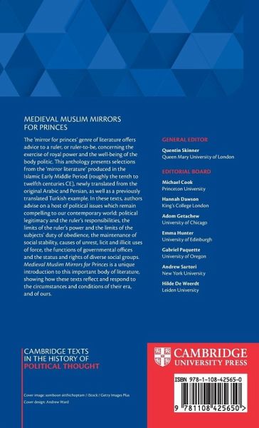 The 'mirror for princes' genre of literature offers advice to a ruler, or ruler-to-be, concerning the exercise of royal power and the wellbeing of the body politic. This anthology presents selections from the 'mirror literature' produced in the Islamic Early Middle Period (roughly the tenth to twelfth centuries CE), newly translated from the original Arabic and Persian, as well as a previously translated Turkish example. In these texts, authors advise on a host of political issues which remain compelling to our contemporary world: political legitimacy and the ruler's responsibilities, the limits of the ruler's power and the limits of the subjects' duty of obedience, the maintenance of social stability, causes of unrest, licit and illicit uses of force, the functions of governmental offices and the status and rights of diverse social groups. Medieval Muslim Mirrors for Princes is a unique introduction to this important body of literature, showing how these texts reflect and respond to the circumstances and conditions of their era, and of ours.