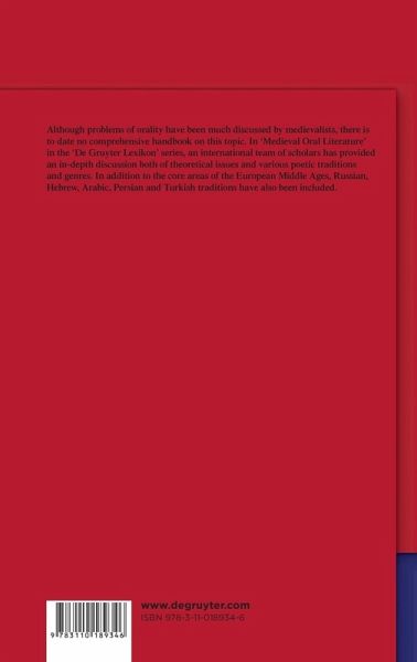 Mittelalterliche Dichtung ist weitgehend der Mündlichkeit verpflichtet, nicht nur was den Vortrag und die Aufführung betrifft, sondern auch im Bezug auf die Überlieferung und das Dichten selbst. Obwohl in der mediävistischen Forschung Fragen der Mündlichkeit mittelalterlicher Dichtung viel diskutiert werden, fehlt es an einer übergreifenden, handbuchartigen Darstellung. Das De Gruyter-Lexikon 'Medieval Oral Literature' wurde von einem internationalen Team von 25 Wissenschaftlern geschrieben und bietet eine fundierte Diskussion theoretischer Ansätze sowie ausführliche Erörterungen einzelner literarischer Traditionen und Gattungen. Neben Kapiteln zur 'oral-formulaic theory', zur Mündlichkeit und Schriftlichkeit im frühen Mittelalter, zur performance und den Sängern/ Spielleuten, zur mündlichen Poetik und zu rituellen Aspekten der Mündlichkeit finden sich Kapitel zu altgermanischen, romanischen, mittelhochdeutschen, mittelenglischen, keltischen, griechisch-byzantinischen, russischen, hebräischen, arabischen, persischen und türkischen Traditionen mündlicher Dichtung. An Gattungen werden insbesondere Epik und Lyrik berücksichtigt, zum Teil in separaten Kapiteln, mit zusätzlichen Kapiteln zur Ballade und zum Drama.