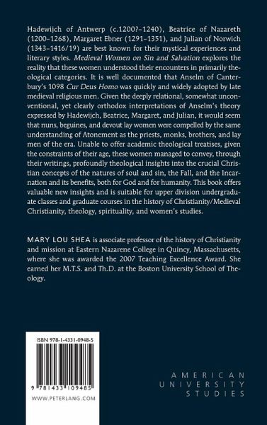 Hadewijch of Antwerp (c.1200?-1240), Beatrice of Nazareth (1200-1268), Margaret Ebner (1291-1351), and Julian of Norwich (1343-1416/19) are best known for their mystical experiences and literary styles. Medieval Women on Sin and Salvation explores the reality that these women understood their encounters in primarily theological categories. It is well documented that Anselm of Canterbury's 1098 Cur Deus Homo was quickly and widely adopted by late medieval religious men. Given the deeply relational, somewhat unconventional, yet clearly orthodox interpretations of Anselm's theory expressed by Hadewijch, Beatrice, Margaret, and Julian, it would seem that nuns, beguines, and devout lay women were compelled by the same understanding of Atonement as the priests, monks, brothers, and lay men of the era. Unable to offer academic theological treatises, given the constraints of their age, these women managed to convey, through their writings, profoundly theological insights into the crucialChristian concepts of the natures of soul and sin, the Fall, and the Incarnation and its benefits, both for God and for humanity. This book offers valuable new insights and is suitable for upper division undergraduate classes and graduate courses in the history of Christianity/Medieval Christianity, theology, spirituality, and women's studies.