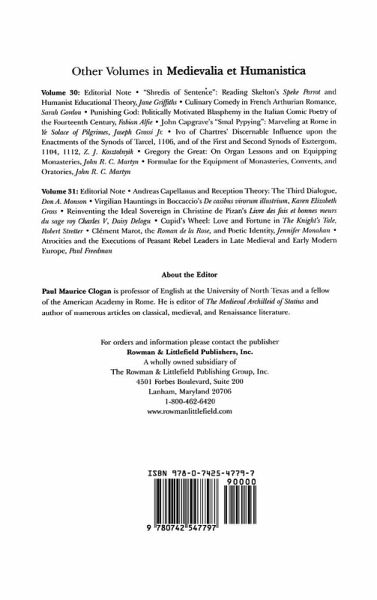 Since its founding in 1943, Medievalia et Humanistica has won worldwide recognition as the first scholarly publication in America to devote itself entirely to medieval and Renaissance studies. Since 1970, a new series, sponsored by the Modern Language Association of America and edited by an international board of distinguished scholars and critics, has published interdisciplinary articles. In yearly hardcover volumes, the new series publishes significant scholarship, criticism, and reviews treating all facets of medieval and Renaissance culture: history, art, literature, music, science, law, economics, and philosophy.