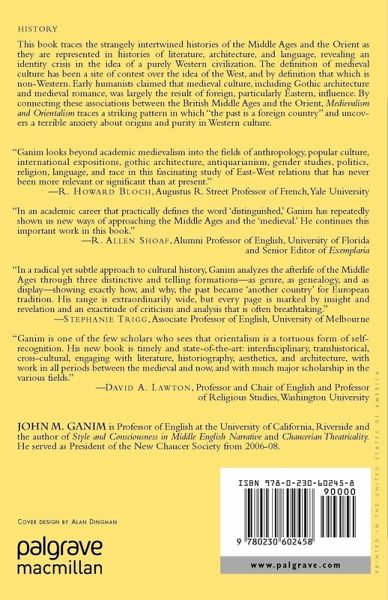 "In an academic career that practically defines the word 'distinguished,' John Ganim has repeatedly shown us new ways of approaching the Middle Ages and the 'medieval.' He continues this important work in his newest book, where he analyzes 'this hybrid identity, the twinned association of medievalism and Orientalism.' He invites and helps us to see how vexed, and vexatious, the categories of our 'historicisms' are as we try to identify the objects of our study, which change even as we ourselves change, not only over time but also through space, especially the unstable and ever troubled space 'between' East and West." - R. Allen Shoaf, Senior Editor, Exemplaria and Alumni Professor of English, University of Florida