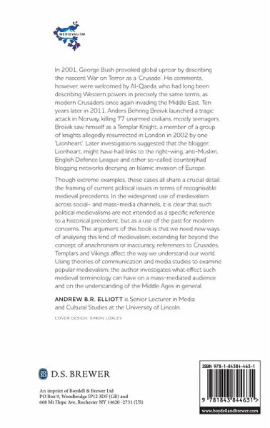 An exploration of how the Middle Ages are manipulated ideologically in today's communication. In 2001, George Bush provoked global uproar by describing the nascent War on Terror as a "Crusade". His comments, however, were welcomed by Al-Qaeda, who had long been describing Western powers in precisely the same terms, as modern Crusaders once again invading the Middle East. Ten years later in 2011, Anders Behring Breivik launched a tragic attack in Norway, killing 77 unarmed civilians, mostly teenagers. Breivik saw himself as a Templar Knight, a member of a group of knights allegedly resurrected in London in 2002 by one "Lionheart". Later investigations suggested that the blogger, Lionheart, might have had links to the right-wing, anti-Muslim, English Defence League and otherso-called "counterjihad" blogging networks decrying an Islamic invasion of Europe. Though extreme examples, these cases all share a crucial detail: the framing of current political issues in terms of recognisable medieval precedents. In the widespread use of medievalism across social- and mass-media channels, it is clear that such political medievalisms are not intended as a specific reference to a historical precedent, but as a use of the past for modern concerns. The argument of this book is that we need new ways of analysing this kind of medievalism; extending far beyond the concept of anachronism or inaccuracy, references to Crusades, Templars and Vikings affect the way weunderstand our world. Using theories of communication and media studies to examine popular medievalism, the author investigates what effect such medieval terminology can have on a mass-mediated audience and on the understanding of the Middle Ages in general. ANDREW B.R. ELLIOTT is Senior Lecturer in Media and Cultural Studies, University of Lincoln.