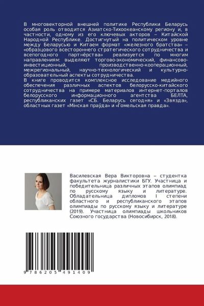 V mnogowektornoj wneshnej politike Respubliki Belarus' osobaq rol' otwoditsq Aziatsko-Tihookeanskomu regionu i, w chastnosti, odnomu iz ego klüchewyh aktorow - Kitajskoj Narodnoj Respublike. Dostignutyj na politicheskom urowne mezhdu Belarus'ü i Kitaem format 'zheleznogo bratstwa' - 'obrazcowogo wsestoronnego strategicheskogo sotrudnichestwa i wsepogodnogo partnörstwa' realizuetsq po mnogim naprawleniqm: wydelqüt torgowo-äkonomicheskij, finansowo-inwesticionnyj, proizwodstwenno-kooperacionnyj, mezhregional'nyj, nauchno-tehnologicheskij i kul'turno-obrazowatel'nyj aspekty sotrudnichestwa. V knige prowoditsq komplexnoe issledowanie medijnogo obespecheniq razlichnyh aspektow belorussko-kitajskogo sotrudnichestwa na primere materialow internet-portalow belorusskogo informacionnogo agentstwa BELTA, respublikanskih gazet 'SB. Belarus' segodnq' i 'Zwqzda', oblastnyh gazet 'M¿nskaq präda' i 'Gomel'skaq prawda'.