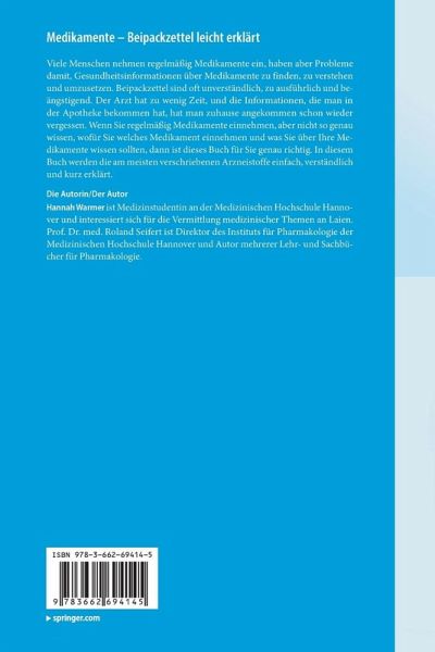 Viele Menschen nehmen regelmäßig Medikamente ein, haben aber Probleme damit, Gesundheitsinformationen über Medikamente zu finden, zu verstehen und umzusetzen. Beipackzettel sind oft unverständlich, zu ausführlich und beängstigend. Der Arzt hat zu wenig Zeit, und die Informationen, die man in der Apotheke bekommen hat, hat man zuhause angekommen schon wieder vergessen. Wenn Sie regelmäßig Medikamente einnehmen, aber nicht so genau wissen, wofür Sie welches Medikament einnehmen und was Sie über Ihre Medikamente wissen sollten, dann ist dieses Buch für Sie genau richtig. In diesem Buch werden die am meisten verschriebenen Arzneistoffe einfach, verständlich und kurz erklärt.