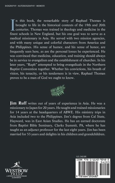 In this book, the remarkable story of Raphael Thomas is brought to life in the historical contexts of the 19th and 20th centuries. Thomas was trained in theology and medicine in the finest schools in New England, but his one goal was to serve as a medical missionary in Asia. He served with two mission agencies, and with many unique and colorful characters from America and the Philippines. His sense of humor, and his sense of honor, are frequently seen here, as are the personal losses he experienced. He was convinced that medicine, education, and training should always be in service to evangelism and the establishment of churches. In his later years, "Raph" attempted to bring evangelicals in the Northern Baptist Convention together. Whether his convictions, his breath of vision, his tenacity, or his tenderness is in view, Raphael Thomas proves to be a man of God we ought to know.