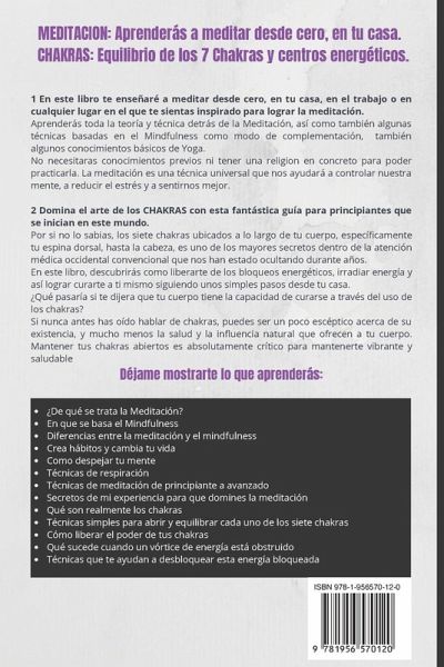 MEDITACION: Aprenderás a meditar desde cero, en tu casa. CHAKRAS: Equilibrio de los 7 Chakras y centros energéticos. 1 En este libro te enseñaré a meditar desde cero, en tu casa, en el trabajo o en cualquier lugar en el que te sientas inspirado para lograr la meditación. Aprenderás toda la teoría y técnica detrás de la Meditación, así como también algunas técnicas basadas en el Mindfulness como modo de complementación, también algunos conocimientos básicos de Yoga. No necesitaras conocimientos previos ni tener una religion en concreto para poder practicarla. La meditación es una técnica universal que nos ayudará a controlar nuestra mente, a reducir el estrés y a sentirnos mejor. 2 Domina el arte de los CHAKRAS con esta fantástica guía para principiantes que se inician en este mundo. Por si no lo sabias, los siete chakras ubicados a lo largo de tu cuerpo, específicamente tu espina dorsal, hasta la cabeza, es uno de los mayores secretos dentro de la atención médica occidental convencional que nos han estado ocultando durante años. En este libro, descubrirás como liberarte de los bloqueos energéticos, irradiar energía y así lograr curarte a ti mismo siguiendo unos simples pasos desde tu casa. ¿Qué pasaría si te dijera que tu cuerpo tiene la capacidad de curarse a través del uso de los chakras? Si nunca antes has oído hablar de chakras, puedes ser un poco escéptico acerca de su existencia, y mucho menos la salud y la influencia natural que ofrecen a tu cuerpo. Mantener tus chakras abiertos es absolutamente crítico para mantenerte vibrante y saludable. Déjame mostrarte lo que aprenderás: ¿De qué se trata la Meditación? En que se basa el Mindfulness Diferencias entre la meditación y el mindfulness Crea hábitos y cambia tu vida Como despejar tu mente Técnicas de respiración Técnicas de meditación de principiante a avanzado Secretos de mi experiencia para que domines la meditación Qué son realmente los chakras Técnicas simples para abrir y equilibrar cada uno de los siete chakras Cómo liberar el poder de tus chakras Qué sucede cuando un vórtice de energía está obstruido Técnicas que te ayudan a desbloquear esta energía bloqueada