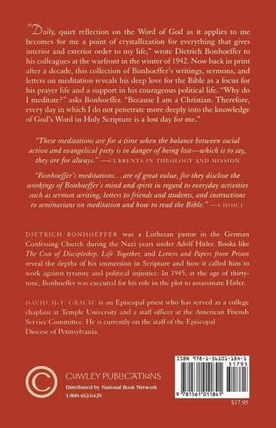"Daily, quiet reflection on the Word of God as it applies to me becomes for me a point of crystallization for everything that gives interior and exterior order to my life," wrote Dietrich Bonhoeffer to his colleagues at the warfront in the winter of 1942. Now back in print after a decade, this collection of Bonhoeffer's writings, sermons, and letters on meditation-including his unfinished meditation on Psalm 119-reveals his deep love for the Bible as a focus for his prayer life and a support in his courageous political life. "Why do I meditate?" asks Bonhoeffer. "Because I am a Christian. Therefore, every day in which I do not penetrate more deeply into the knowledge of God's Word in Holy Scripture is a lost day for me."