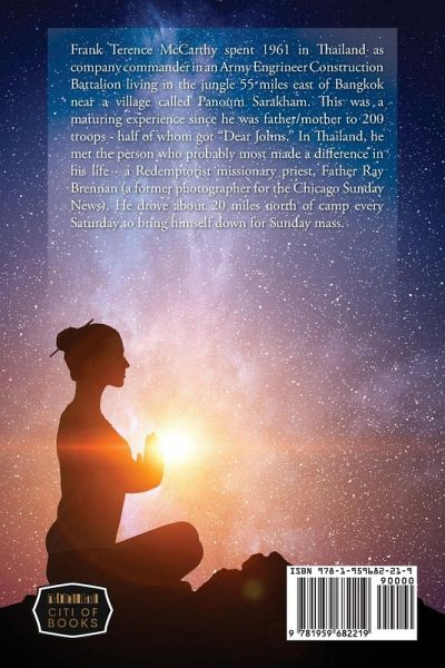 Frank Terence McCarthy spent 1961 in Thailand as a company commander in an Army Engineer Construction Battalion living in the jungle 55 miles east of Bangkok near a village called Panoum Sarakham. This was a maturing experience since he was father/mother to 200 troops - half of whom got "Dear Johns." In Thailand, he met the person who probably most made a difference in his life - a Redemptorist missionary priest, Father Ray Brennan (a former photographer for the Chicago Sunday News). He drove about 20 miles north of camp every Saturday to bring himself down for Sunday mass.