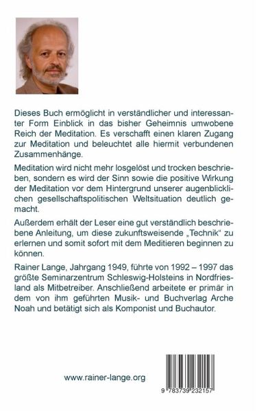 Dieses Buch ermöglicht in verständlicher und interessanter Form Einblick in das bisher geheimnisumwobene Reich der Meditation. Es verschafft einen klaren Zugang zur Meditation und beleuchtet alle hiermit verbundenen Zusammenhänge.Meditation wird nicht mehr losgelöst und trocken beschrieben, sondern es wird der Sinn sowie die positive Wirkung der Meditation vor dem Hintergrund unserer augenblicklichen gesellschaftspolitischen Weltsituation deutlich gemacht.Außerdem erhält der Leser eine gut verständlich beschriebene Anleitung, um diese zukunftsweisende "Technik" zu erlernen und somit sofort mit dem Meditieren beginnen zu können.152 Seiten
