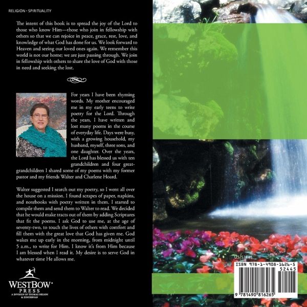 The intent of this book is to spread the joy of the Lord to those who know Him-those who join in fellowship with others so that we can rejoice in peace, grace, rest, love, and knowledge of what God has done for us. We look forward to Heaven and seeing our loved ones again. We remember this world is not our home; we are just passing through. We join in fellowship with others to share the love of God with those in need and seeking the lost.