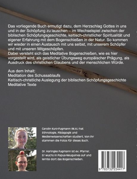 Das vorliegende Buch ermutigt dazu, dem Herzschlag Gottes in uns und in der Schöpfung zu lauschen - im Wechselspiel zwischen der biblischen Schöpfungsgeschichte, keltisch-christlicher Spiritualität und eigener Erfahrung mit dem Bogenschießen in der Natur. So kommen wir wieder in einen Austausch mit uns selbst, mit unserem Schöpfer und mit unseren Mitgeschöpfen.Dabei versteht sich das Meditative Bogenschießen, wie es hier vorgestellt wird, als geistlicher Übungsweg europäischer Prägung, als Ausdruck des christlichen Glaubens und der menschlichen Würde.Für Fragen der Technik, der Ausrüstung, der Geschichte und der Spiritualität des traditionellen Bogenschießens sei das Buch "Meditatives Bogenschießen. Traditionelles europäisches Bogenschießen als geistlicher Übungsweg und Lebenshilfe" (2012) desselben Autors empfohlen.