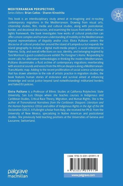 This book is an interdisciplinary study aimed at re-imagining and re-routing contemporary migrations in the Mediterranean. Drawing from visual arts, citizenship studies, film, media and cultural studies, along with postcolonial, border, and decolonial discourses, and examining the issues from within a human rights framework, the book investigates how works of cultural production can offer a more complex and humane understanding of mobility in the Mediterranean beyond representations of illegality and/or crisis. Elvira Pulitano centers the discourse of cultural production around the island of Lampedusa but expands the island geography to include a digital multi-media project, a social enterprise in Palermo, Sicily, and overall reflections on race, identity, and belonging inspired by Toni Morrison's guest-curated Louvre exhibit The Foreigner's Home. Responding to recent calls for alternative methodologies in thinking the modern Mediterranean, Pulitano disseminates afluid archive ofcontemporary migrations reverberating with ancestral sounds and voices from the African diaspora along a Mediterranean-TransAtlantic map. Adding to the recent proliferation of social science scholarship that has drawn attention to the role of artistic practice in migration studies, the book features human stories of endurance and survival aimed at enhancing knowledge and social justice beyond (and notwithstanding) militarized borders and failed EU policies.