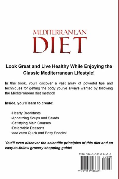 Look Great and Live Healthy While Enjoying the Classic Mediterranean Lifestyle! When you read Mediterranean Diet, you’ll discover a vast array of powerful tips and techniques for getting the body you’ve always wanted! Inside, you’ll learn to create: * Hearty Breakfasts * Appetizing Soups and Salads * Satisfying Main Courses * Delectable Desserts * and even Quick and Easy Snacks! You’ll even discover the scientific principles of this diet and an easy-to-follow grocery shopping guide! Don’t wait another moment to enjoy the slim, healthy body you deserve – Get your copy of Mediterranean Diet right away!
