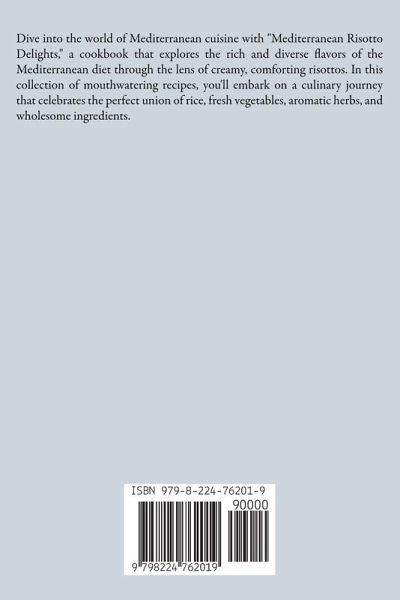 Dive into the world of Mediterranean cuisine with "Mediterranean Risotto Delights," a cookbook that explores the rich and diverse flavors of the Mediterranean diet through the lens of creamy, comforting risottos. In this collection of mouthwatering recipes, you'll embark on a culinary journey that celebrates the perfect union of rice, fresh vegetables, aromatic herbs, and wholesome ingredients. Discover the art of creating sumptuous risotto dishes inspired by the Mediterranean's sun-kissed shores and vibrant cultures. From classic favorites like Risotto alla Milanese to inventive twists like Greek Lemon-Herb Risotto, this cookbook offers a tantalizing array of rice-based recipes that are both nutritious and indulgent. The Mediterranean diet has long been celebrated for its health benefits, and these risotto recipes are no exception. Each dish is carefully crafted to showcase the region's abundant produce, heart-healthy olive oil, and the soul-warming embrace of a well-cooked risotto. Whether you're a seasoned chef or just beginning your culinary adventure, "Mediterranean Risotto Delights" provides step-by-step instructions and tips to ensure your risotto creations are nothing short of spectacular. Elevate your dining experience with dishes that burst with Mediterranean flavors. With recipes suitable for both weeknight dinners and special occasions, this cookbook invites you to savor the essence of the Mediterranean diet, one creamy, satisfying risotto at a time. Embrace wholesome ingredients, vibrant colors, and unforgettable tastes on your path to a healthier and happier you. "Mediterranean Risotto Delights" is your passport to a culinary voyage that will nourish your body and delight your palate.