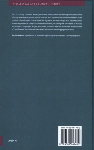 I. Prologue 1. Transmission and/or Understanding? On the Postal and Erotic Principles of Communication II. Methodological Considerations 2. Is a Metaphysics of Mediality Possible? III. Introductions 3. Walter Benjamin 4. Jean-Luc Nancy 5. Michel Serres 6. Régis Debray 7. John Durham Peters IV. The Messenger Model 8. An Initial Summary 9. The Messenger as Topos V. Transmission Relations 10. Angels: Communication through Hybridization 11. Viruses: Contagion through Transcription 12. Money: The Transmission of Property through Desubstantiation 13. Translation: Language Transmission as Complementation 14. Psychoanalysis: Transmission through Affective Resonance 15. Witnessing: Bearing Witness through Credibility VI. What Does Transmission Mean? 16. Making Perceptible 17. Reading Traces VII. Test 18. Maps, Charts, Cartography VIII. Epilogue 19. World View Dimensions, Ambivalences, Possible Directions for Further Research, Bibliography