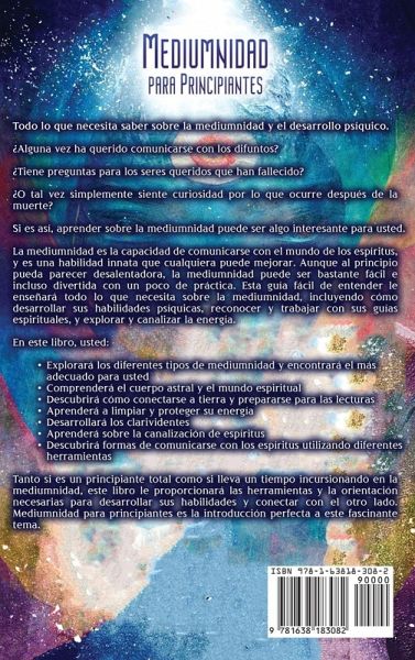 Todo lo que necesita saber sobre la mediumnidad y el desarrollo psíquico. ¿Alguna vez ha querido comunicarse con los difuntos? ¿Tiene preguntas para los seres queridos que han fallecido? ¿O tal vez simplemente siente curiosidad por lo que ocurre después de la muerte? Si es así, aprender sobre la mediumnidad puede ser algo interesante para usted. La mediumnidad es la capacidad de comunicarse con el mundo de los espíritus, y es una habilidad innata que cualquiera puede mejorar. Aunque al principio pueda parecer desalentadora, la mediumnidad puede ser bastante fácil e incluso divertida con un poco de práctica. Esta guía fácil de entender le enseñará todo lo que necesita sobre la mediumnidad, incluyendo cómo desarrollar sus habilidades psíquicas, reconocer y trabajar con sus guías espirituales, y explorar y canalizar la energía. En este libro, usted:Explorará los diferentes tipos de mediumnidad y encontrará el más adecuado para usted Comprenderá el cuerpo astral y el mundo espiritual Descubrirá cómo conectarse a tierra y prepararse para las lecturas Aprenderá a limpiar y proteger su energía Desarrollará los clarividentes Aprenderá sobre la canalización de espíritus Descubrirá formas de comunicarse con los espíritus utilizando diferentes herramientas Tanto si es un principiante total como si lleva un tiempo incursionando en la mediumnidad, este libro le proporcionará las herramientas y la orientación necesarias para desarrollar sus habilidades y conectar con el otro lado. Mediumnidad para principiantes es la introducción perfecta a este fascinante tema.