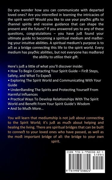 Do you wonder how you can communicate with departed loved ones? Are you interested in learning the intricacies of the spirit world? Would you like to use your psychic gifts to channel spirits and receive guidance that can shape the present and the future? If you answered yes to any of these questions, congratulations - you have just found your ultimate guide to becoming a spiritual medium and mastering your intuitive abilities. A spiritual medium's purpose is to act as a bridge connecting this life to the spirit world. Every medium has psychic abilities, but not everyone has mastered the ability to utilize their gift. Here's just a little of what you'll discover inside:How To Begin Contacting Your Spirit Guide - First Steps, Safety, and What To Expect Exploring The Spirit World and Communicating With Your Guide Understanding The Spirits and Protecting Yourself From Harmful Influences Practical Ways To Develop Relationships With The Spirit World and Benefit From Your Spirit Guide's Wisdom And So Much More... You will learn that mediumship is not just about connecting to the Spirit World; it's just as much about helping and healing the living. There are spiritual bridges that can be built to connect to your loved ones who have passed, as well as the most important bridge of all: the bridge to your own spirit.