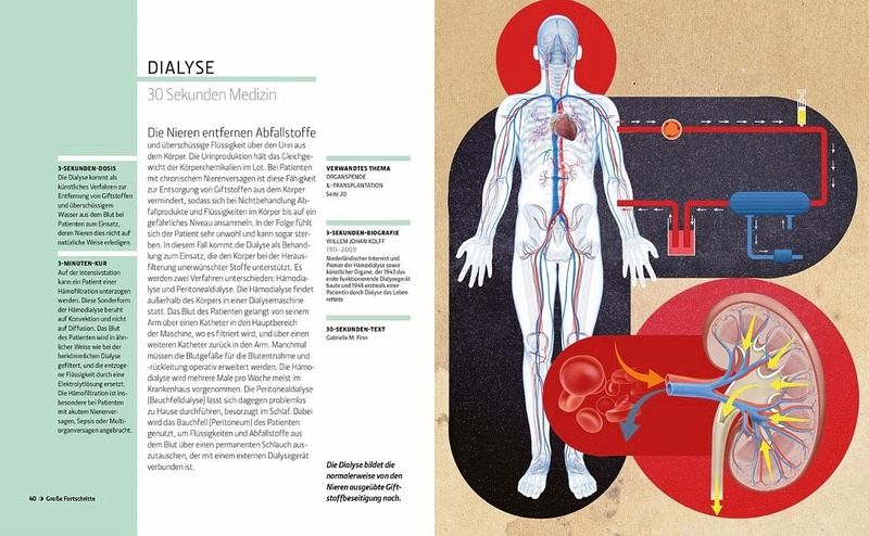 Medizin in 30 Sekunden beantwortet diese und ähnliche Fragen in kurzen Beiträgen zu Krankheitsbildern und Diagnostik, Therapie und Pharmazie auf je einer Doppelseite in Wort und Bild. Die Themenvielfalt reicht von Naturmedikamenten und Homöopathie über die moderne minimalinvasive Chirurgie bis hin zu bionischen Gliedmaßen und individualisierter Medikamentierung. Porträts von Pionieren der Medizin runden das Bild ab.