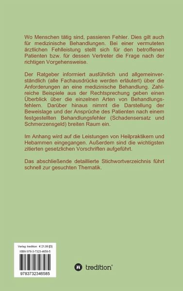 Im Anhang werden die Behandlung durch Heilpraktiker und die Leistungen von Hebammen auch unter Haftungsgesichtspunkten dargestellt. Es folgt eine Zusammenfassung der wichtigsten zitierten Gesetzesvorschriften. Den Abschluss bildet ein ausführliches Stichwortverzeichnis.