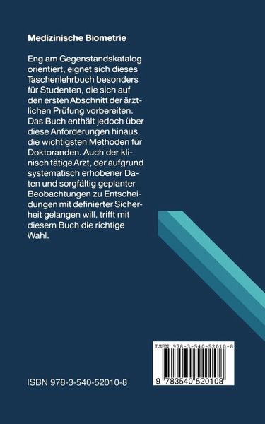 Die Biometrie ist nicht nur für die medizinische Wissenschaft unverzichtbar geworden, sie ist auch wichtig für den klinisch tätigen Arzt. Das Erkennen von Krankheiten und die Beurteilung des Erfolgs therapeutischer oder präventiver Maßnahmen beruhen auf empirischem Wissen. Alle hieraus gezogenen Schlußfolgerungen sind somit Wahrscheinlichkeitsaussagen. Daten verläßlich zu gewinnen und richtig zu interpretieren ist äußerst wichtig, um Risiken abschätzen zu können. Dazu muß man die Methoden kennen. In diesem Taschenlehrbuch werden die wichtigsten biometrischen Verfahren dargestellt. Damit kann man aufgrund systematisch erhobener Daten und sorgfältig geplanter Beobachtungen zu Entscheidungen mit definierter Sicherheit gelangen. Da sich dieses Lehrbuch eng am Gegenstandskatalog orientiert, eignet es sich besonders für Studenten als Ergänzung zur Vorlesung. Für die Doktorarbeit braucht man die dargestellten Methoden auf jeden Fall!